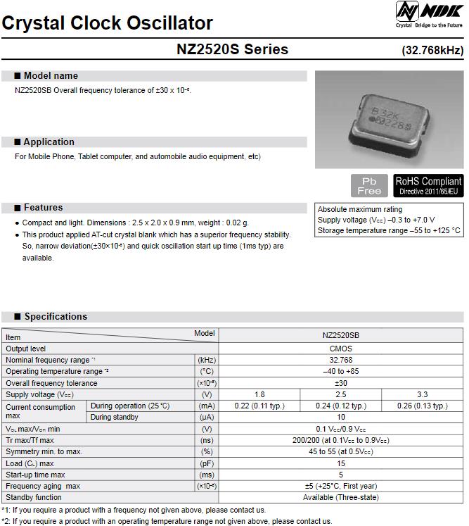 | NZ2520SB-32.768KHZ-NSA3534C | NDK America, Inc. | NZ2520S | 32.768kHz | 1.8V |