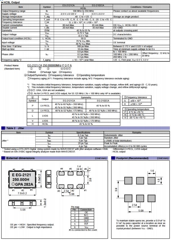 | Q3805CA10001000 | EG-2121CA | 250.000000 MHz | 7.00 x 5.00 x 1.20 mm | LVDS | 2.375 to 2.625 V | 0 to 70 °C |