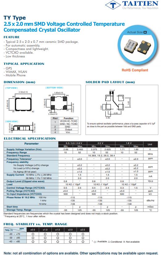 | TYEAACSANF-19.200000 | Taitien | TY | VCTCXO | 19.2MHz | 2.8 V ~ 3.3 V |