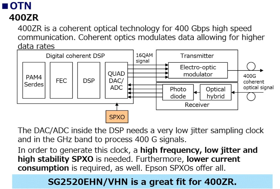由于物聯網和ADAS等5G應用的實施,隨著數據流量的增長,網絡基礎設施變得比以往任何時候都更加重要。IT廠商一直在快速建設數據中心,對安裝在數據中心內部的光模塊有著巨大的需求。這種應用要求晶體振蕩器具有“小”、“低抖動”和“高穩定性”,而我們的SG2520系列貼片石英晶振可以滿足所有這些要求。以下是我們產品的特點,這些將有助于光模塊的性能。X1G0058810001專用于6G光學應用的小型封裝高穩定性振蕩器