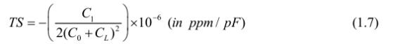 晶體制造商將晶體給定的負載電容的方程式(1.7)稱為“微調靈敏度”。 圖4是“修剪靈敏度”的圖形表示。