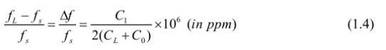 許多應用需要改變晶體的頻率。 一個示例是VCXO(壓控振蕩器),其中需要將工作頻率調諧到所需的值或在所需的電壓范圍內改變頻率。 隨著與晶體串聯的電容性負載的變化,晶體頻率被拉高。 頻率隨負載電容C L的變化表示為: