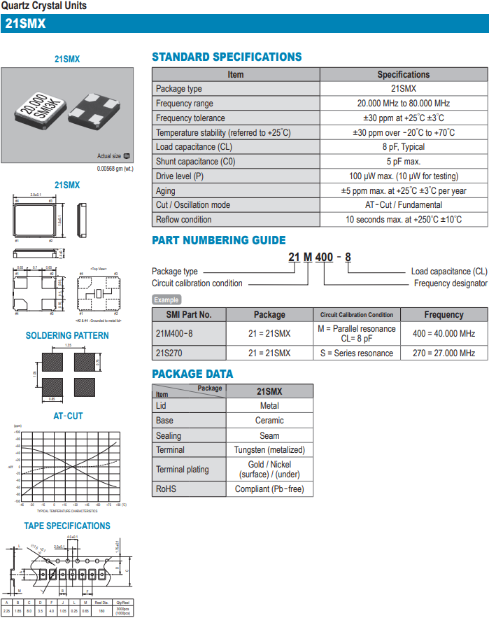 | SMI晶振 | 單位 | 21SMX晶振 | 石英晶振基本條件 |
