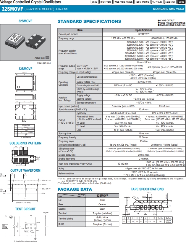 SMI晶振,SMI Crystal,32SMOVF壓控振蕩器.小型表面貼片型貼片晶振,較適合使用在汽車電子領(lǐng)域中,也是特別要求高可靠性的引擎控制用CPU的時(shí)鐘部分.低頻晶振可從1.25MHz起對應(yīng),小型,薄型具備強(qiáng)防焊裂性,石英晶振在惡劣嚴(yán)酷的環(huán)境條件下也能發(fā)揮穩(wěn)定的起振特性.