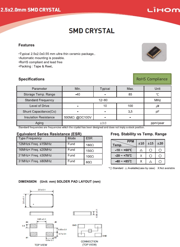 | Lihom晶振 | 單位 | BMC-25晶振 | 石英晶振基本條件 |