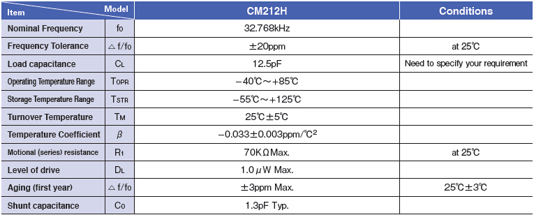 CM212H石英晶振,2012mm晶體振蕩器,西鐵城32.768KHZ晶振,高密度SMD類型2.0*1.2*0.55mm,頻率32.768KHZ時鐘晶振,音叉晶體與陶瓷包裝類型,高密度SMD類型,超輕重量包裝,高穩定性保證嚴格的真空密封.最適合于便攜式設備和移動電信設備.