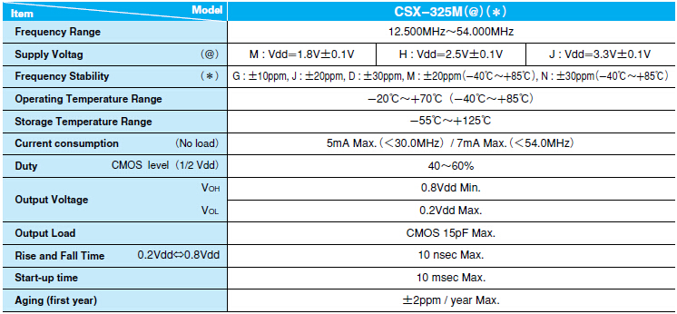 西鐵城3225mm振蕩器,CSX-325M有源晶振,車載專用晶振,工作頻率范圍12.5~54.0MHZ,尺寸大小3.2*2.5mm,廣泛的輸出頻率鎖相環技術,快速樣品交付質量和短的交貨時間生產,允許輸出低電流消耗,函數(OE)或站在函數(備用).適合各種應用程序通訊設備、AV設備和測量儀器.