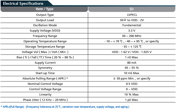 DJ,DR,3225mm有源晶振,壓控晶體振蕩器,TXC石英晶振,壓控晶體振蕩器(VCXO),基本解決方案,LVPECL輸出,輸出頻率50兆赫到200兆赫.優(yōu)秀的低相位噪聲和抖動,可用三態(tài)函數(shù),應用程序:SDH / SONET、以太網(wǎng)、基站,通過無鉛認證/ Pb免費.