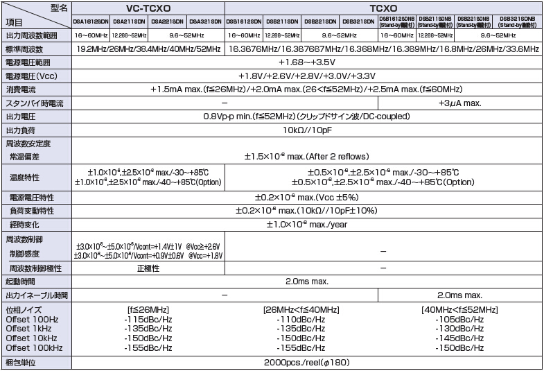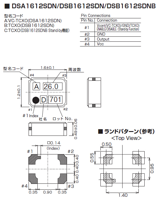 進口KDS晶振,DSA1612SDN(VC-TCXO),DSB1612SDN(TCXO)有源晶振,頻率范圍12.288MHz~52.0MHz,小型SMD封裝1.6*1.2*0.49mm,VC-TCXO產品內部晶片焊接模式采用了,高精密點膠技術:晶片膠點的位置、大小:位置準確度以及膠點大小一致性,通過圖像識別及高精密度數字定位系統的運用、使晶片的點膠的精度在±0.02mm之內.