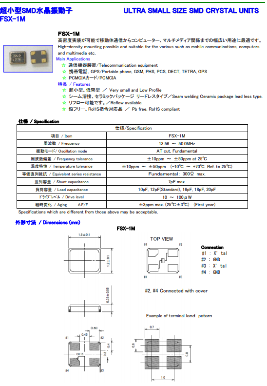 | 富士晶振 | 單位 | FSX-1M晶振 | 石英晶振基本條件 |