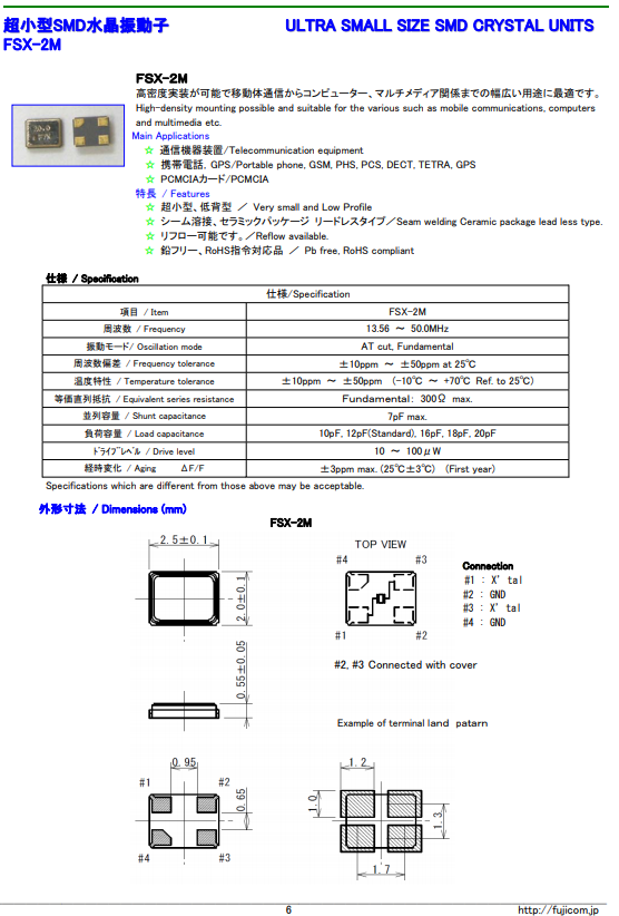 | 富士晶振 | 單位 | FSX-2M晶振 | 石英晶振基本條件 |