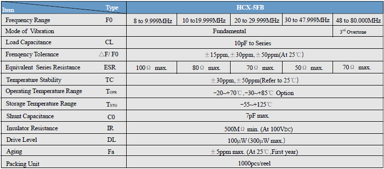HCX-5FA二腳陶瓷面諧振器,5032mm智能手機(jī)晶振,臺灣鴻星晶振,是一個超微型包時鐘振蕩器尺寸為5.0 * 3.2 * 1.4mm.工作頻率8.0~80.0MHZ,頻率可以滿足大多數(shù)藍(lán)牙芯片,優(yōu)良的電氣性能最優(yōu)為手機(jī)和藍(lán)牙應(yīng)用程序展示,良好的耐熱性和耐沖擊性,無鉛的產(chǎn)品,這些能滿足使用無鉛焊料回流分析的要求.