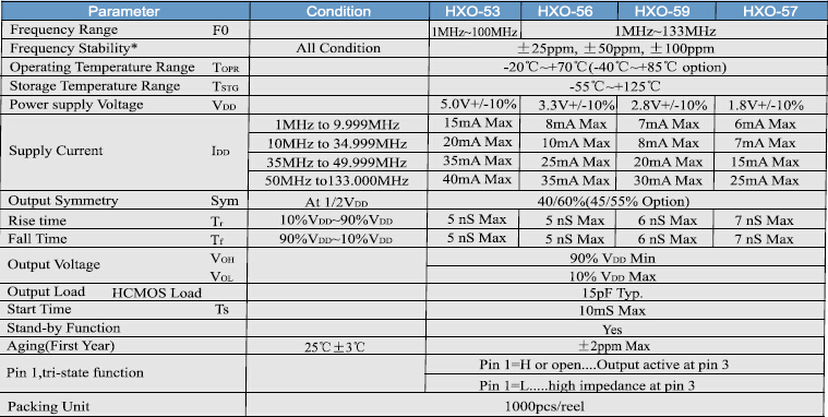 HXO-5,HXO-Q5石英晶體振蕩器,5032mm有源晶振,鴻星晶振供應商,HXO-5系列是一個超微型包時鐘振蕩器尺寸為5.0 * 3.2 * 1.3mm,工作電壓1.8V~5.0V可供選擇.三態啟用/禁用TTL / HCMOS兼容的磁帶和卷軸紅外回流,主要用于便攜式電腦和電信設備和設備.