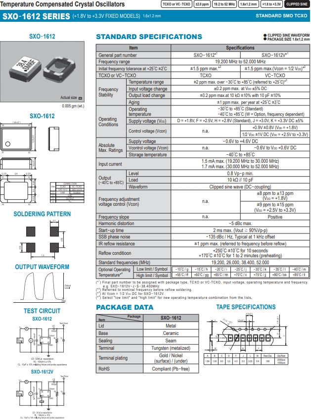 SMI晶振,溫補(bǔ)晶振,SXO-1612振蕩器.該類產(chǎn)品特性如耐熱性,耐沖擊性,在辦公自動(dòng)化,家電相關(guān)電器領(lǐng)域及Bluetooth,Wireless LAN等短距離無(wú)線通信領(lǐng)域可發(fā)揮優(yōu)良的電氣特性,滿足無(wú)鉛焊接的回流溫度曲線要求.