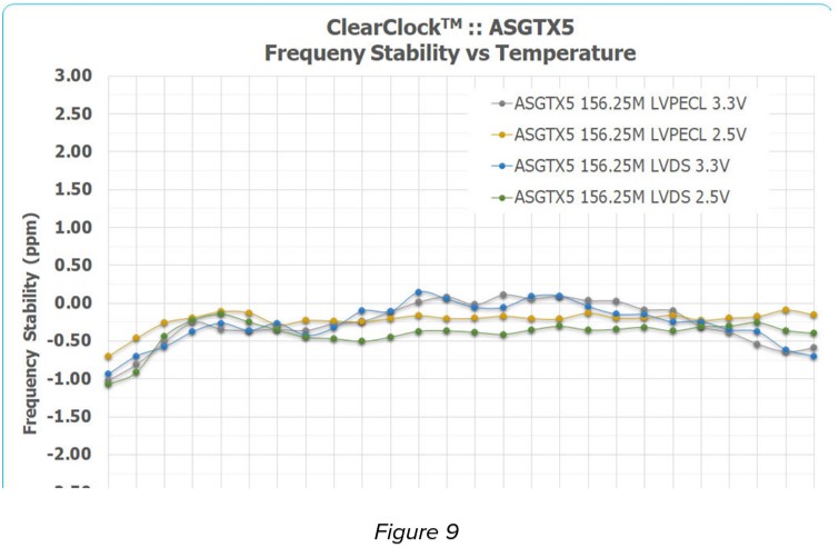 圖10總結了具有LVPECL和LVDS輸出格式的ASGTX5 TCXO晶振[5.0 x 3.2 x 1.5 mm]器件在所有可用Vdd電平下的典型相位噪聲性能。