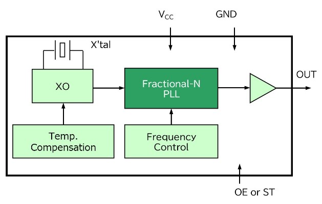 1,通過溫度補(bǔ)償功能在寬溫度范圍內(nèi)保持高頻率穩(wěn)定性